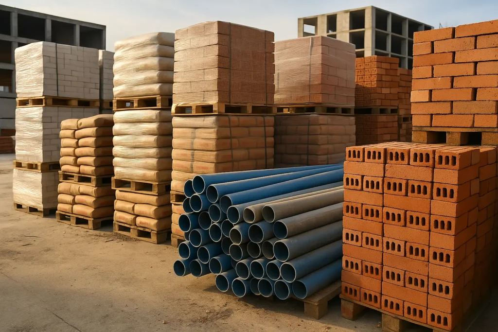 - Structural Materials – Cement, steel, reinforcement bars, and bricks.